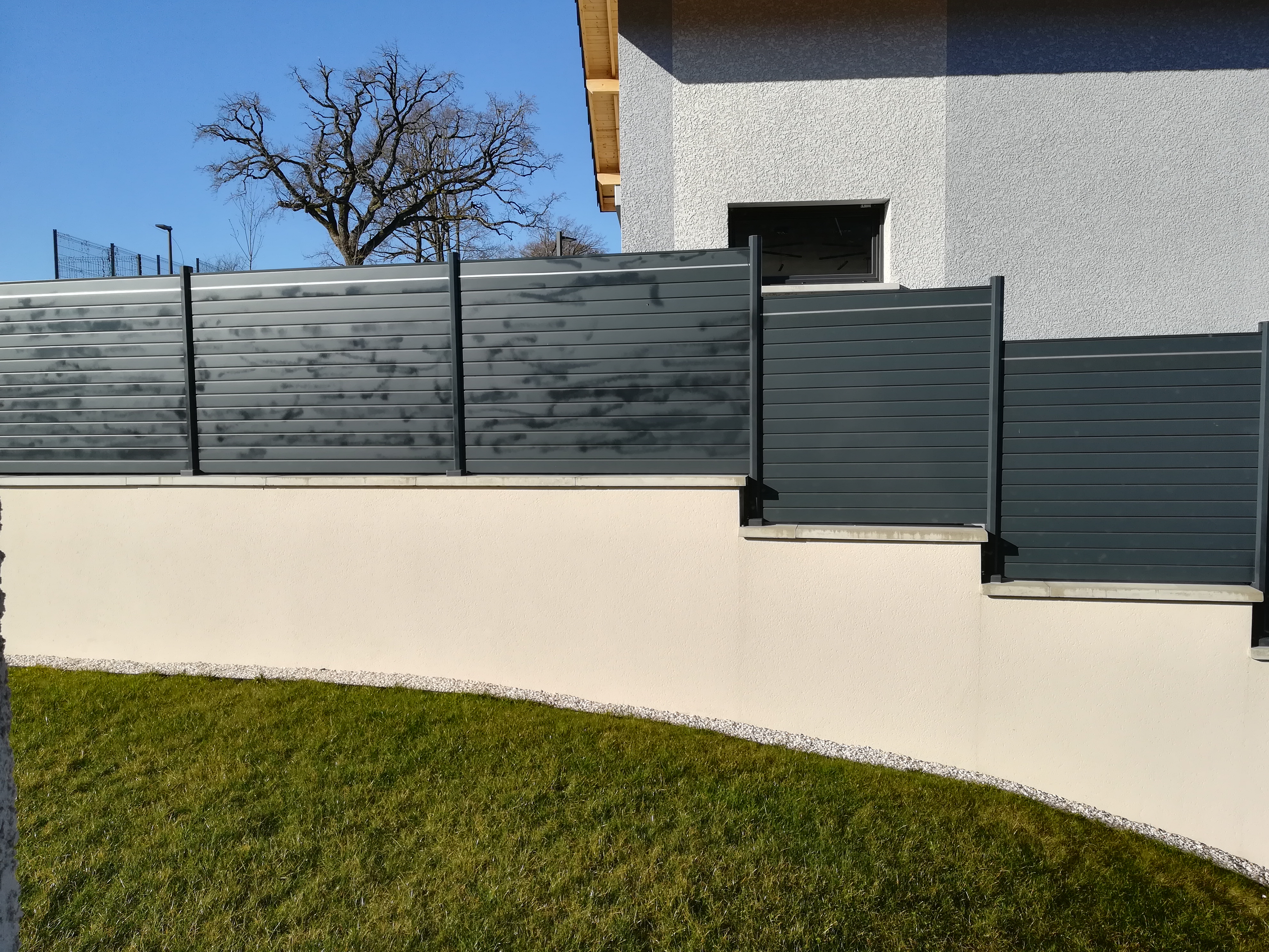 Intervention pour la pose d'un clôture type Alulame en octobre 2020 sur un mur mitoyen. Suite à des vents courant mars 2021, certaines lames se sont envolées et 6 poteaux sur 10 n'étaient plus correctement fixés. Intervention fin mai 2021 de l'entreprise seulement à cause du contexte sanitaire. Nous avons refixé les poteaux et l'entreprise est intervenue pour remettre de nouvelles lames et ajouter de la peinture sur les lames rayées. Les taches de peinture sur 10 mètres de linéaire devaient s'estomper au bout d'un mois... 11 mois après, les tâches sont toujours présentes. Vous verrez l'ampleur des dégâts sur les photos ci-jointes. Ce projet a été facturé 4590€ ! Comment un professionnel peut être satisfait d'un tel travail ? La clôture est clairement saccagée sur 10 mètres. Incompétence totale ou acte délibéré ? A vous d'en juger. Malgré l'intervention d'une lettre recommandée et d'un conciliateur de justice, aucune réparation n'est envisageable, si même un déplacement à domicile de sa part pour constater les dégâts. L’entreprise nous conseille d'aller au tribunal ....