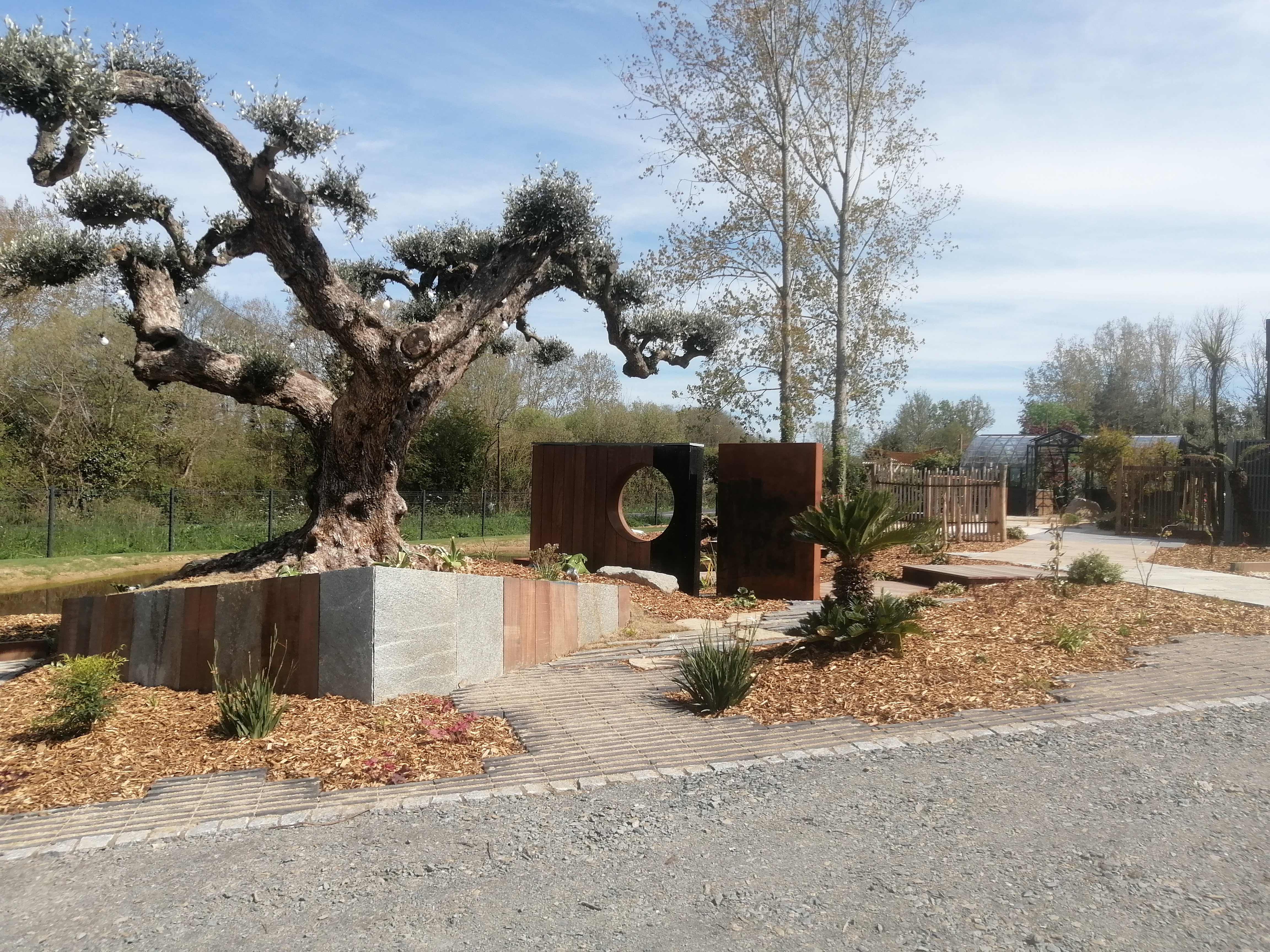 Magnifique création au-delà de nos espérances visible aux Jardins de la Fée à Saint-Hilaire-de-Riez. La fontaine partiellement réalisée en véritable pierre de taille est un petit bijou de créativité. Antoine, Aurélien et Jean ont su d'abord nous séduire avec un plan et des images 3D qui laissaient imaginer un projet prometteur. L'aménagement est des plus réussi avec une harmonie parfaite entre la pierre, le bois et le végétal. Bravo aux artistes !